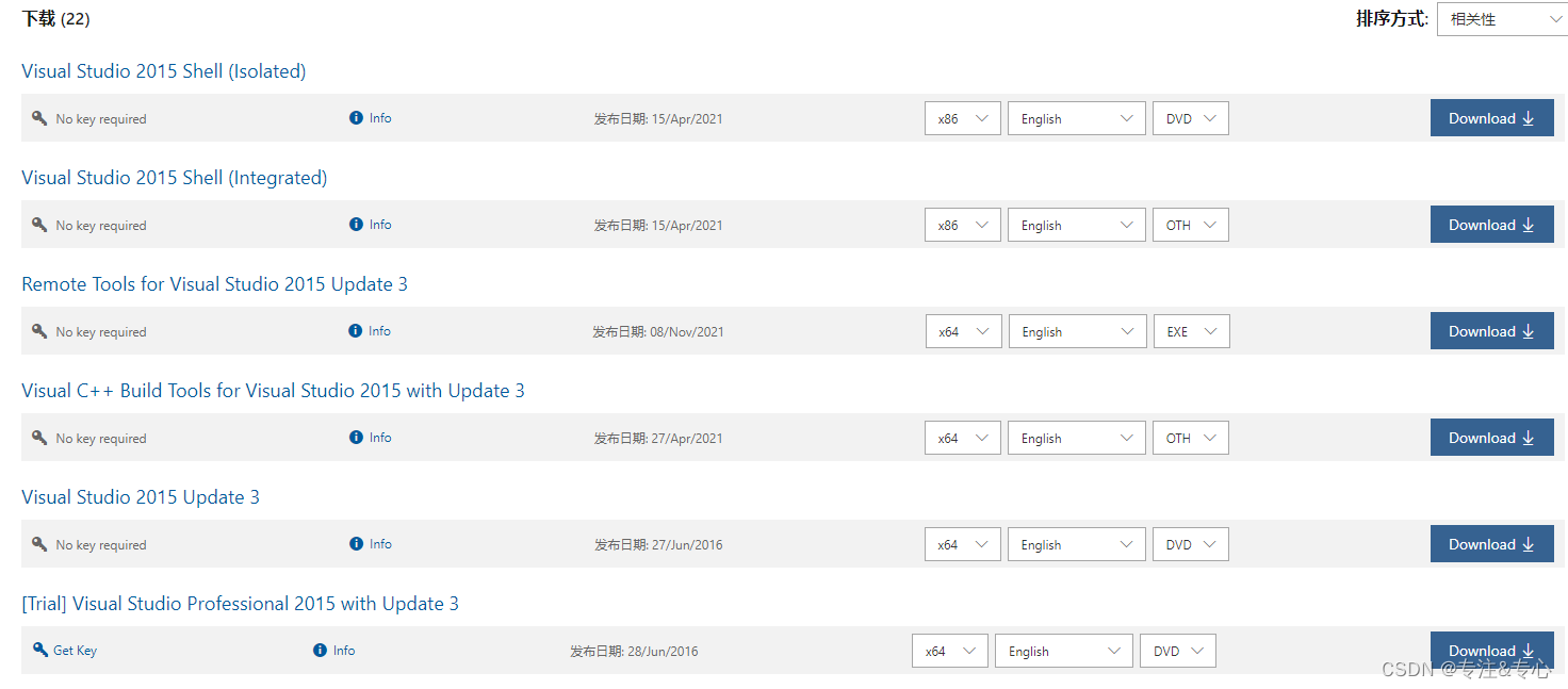 博主下载的是“Visual Studio Community 2015 with Update 3”和“Visual Studio Professional 2015