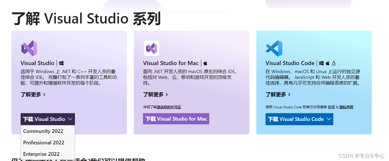 最新版本的VS可以直接在官网 https://visualstudio.microsoft.com/zh-hans/ 根据需要下载不同版