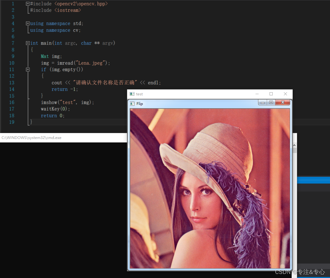 完成以上配置后,在之前建立的C++文件中输入如下代码进行测试,