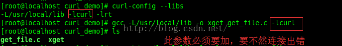 curl-config --libs 查看我们的代码链接libcurl时需要哪些参数,这个选项我们用的比较多