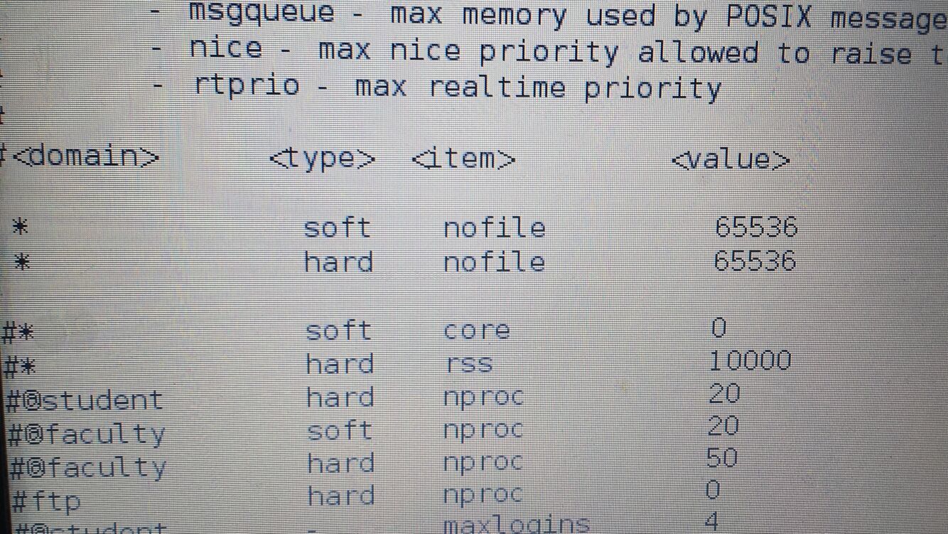 * soft nofile 65536