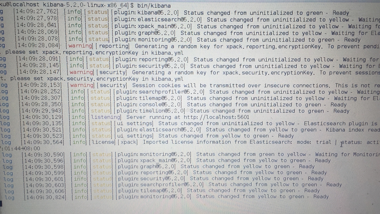 启动成功图;浏览器输入http://localhost:5601 即可进入kibana图形化界面管理es。