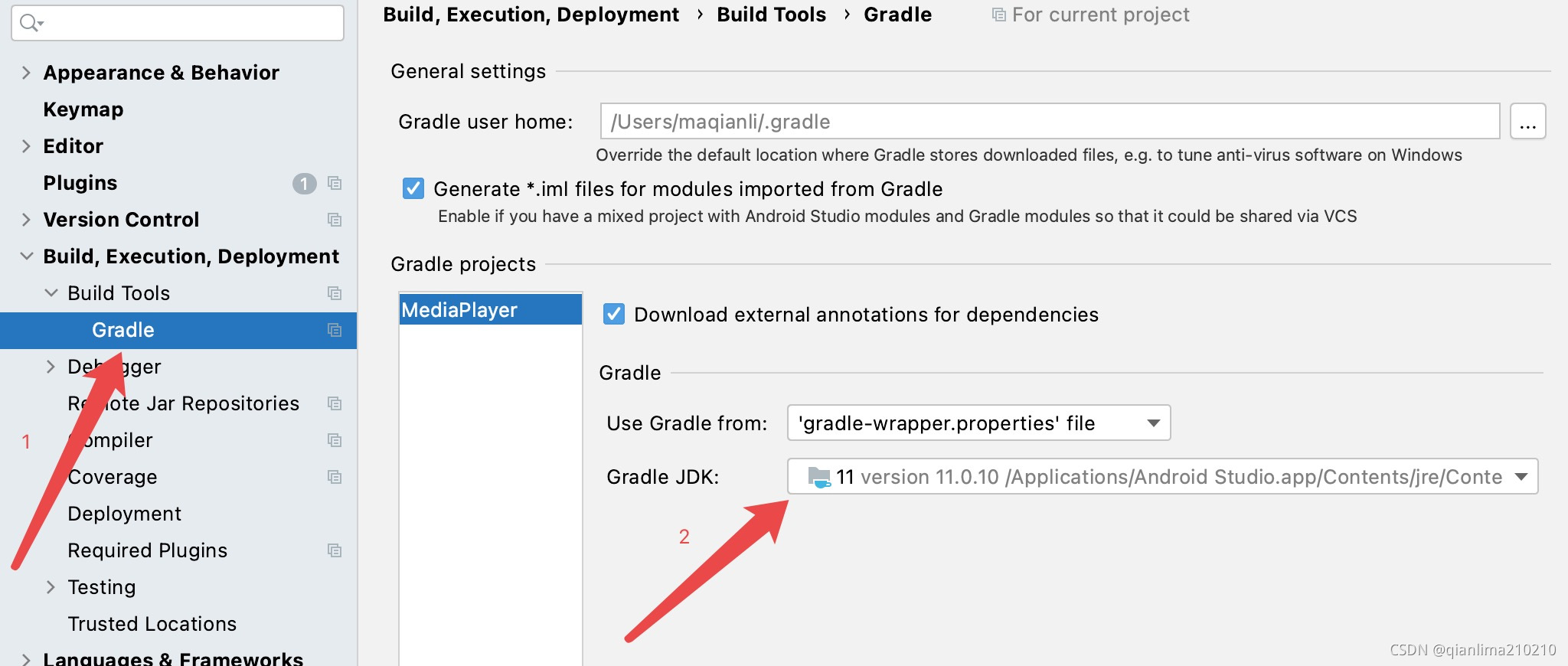 AndroidStudio > Preferences... > Gradle >Gradle JDK中选中11 java version "11.0.10"