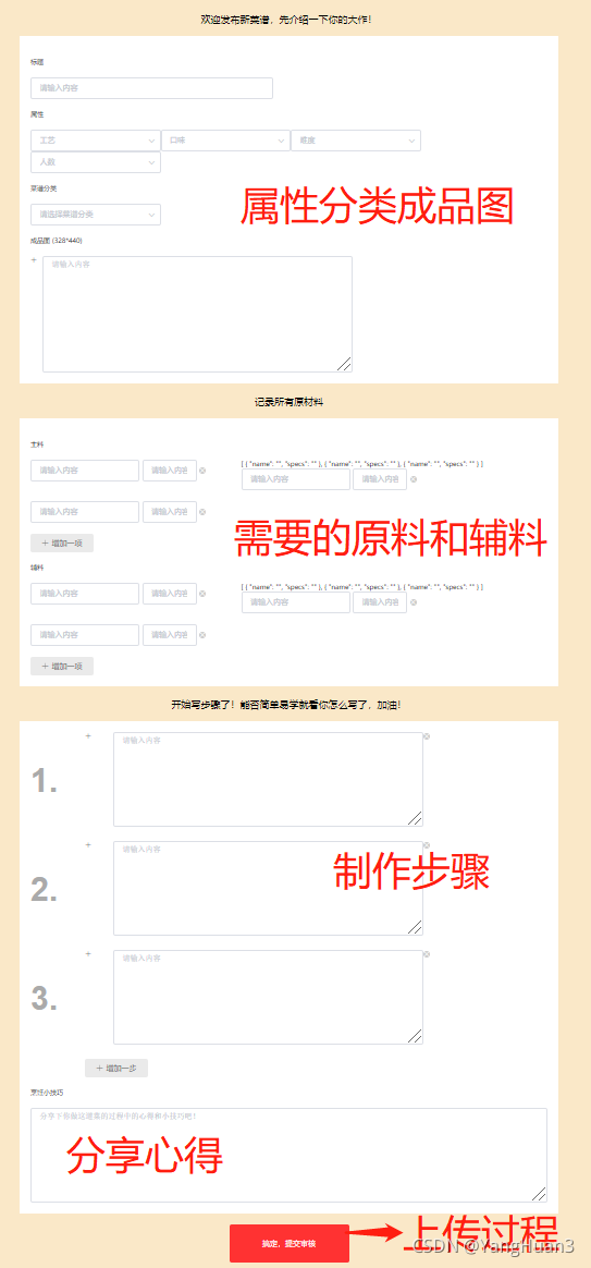 美食杰-发布菜谱的完善效果(六) 在这之前先。大致总结一下之前的写的效果吧。第一是页面的登录,注册,和退出的组件,这里我们需要全看一下美食杰 login的实现效果(一)_qianluo111的博客-CSDN博客 这篇文章,对你会有一些启发哦!迷茫的时候看一下吧!第二个是个人空间站,实现关注,粉丝,收藏,作品展示。这里温顾一下(1条消息) 美食杰-space个人空间站!创建实现,关注,作品,粉丝,收藏!(二)_qianluo111的博客-CSDN博客这篇文章讲解的就是个人空间站里面要实现的效果,但是还有很多不完善的地方。...