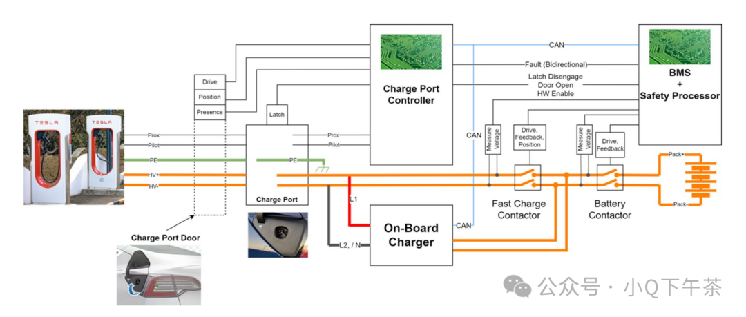NACS的接口电路与CCS的接口电路完全一样,对于原来是CCS标准接口的车载控制和检测单元(OBC或者BMS)电路而言,不需要重新设计和layout了,是可以完全兼容。这对于NACS的推广是有利的。针对通讯也是没有限制的,完全可以兼容IEC15118的要求。