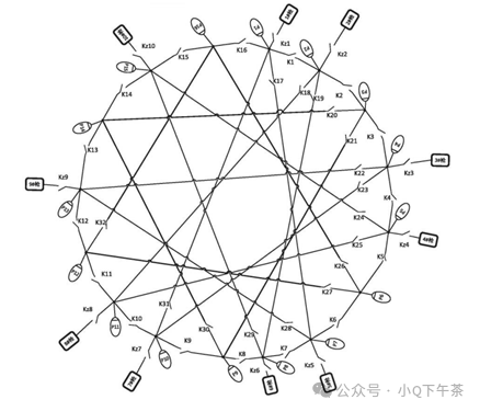 以10把枪16个充电模块和32组开关组成的多枪群充系统六芒星式矩阵拓扑结构