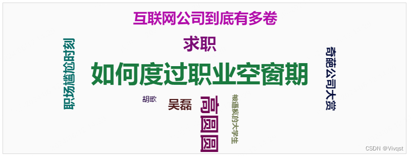 根据标签出现的频次渲染不同大小的圆和文字,圆随机摆放且相互之间不重叠 这里其实还需要考虑到适配的问题,如果矩形区域被缩放,那么文字和圆的大小也应该进行缩放,我这里采用的是scale的方式,计算当前屏幕相对于1920(我们开发的参考尺寸是1920*1080)的比例,然后将对应的maxFontSize * scale ,maxWidth * scale,最小的尺寸就不需要再考虑啦,已经很小啦,当然如果最大尺寸被缩放到比最小的都小的时候就直接取最小尺寸吧!该公式成立则两圆相交,其中(x1,y1)为圆1的中心坐标,(x2,y2)为圆2的中心坐标,r1、r2分别为两个圆的半径。