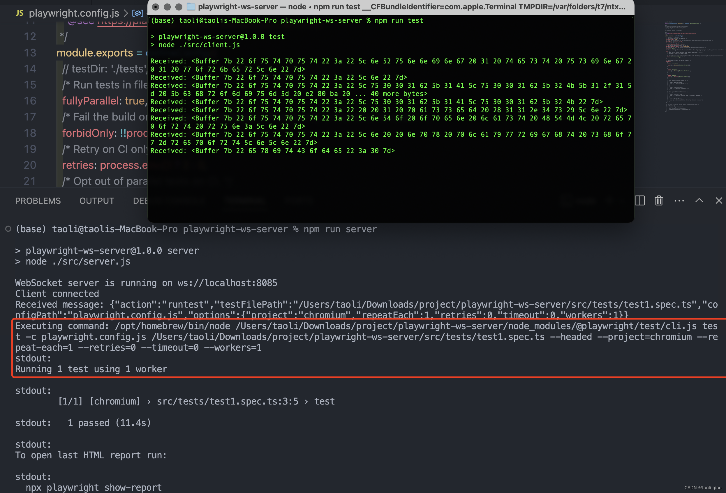 上一篇博客从源码层面分析了playwright vscode插件实现原理,在上一篇博客中提到,backend服务是一个websocket服务。这遍博客将介绍如何封装一个websocket服务,通过发送消息来执行playwright测试。