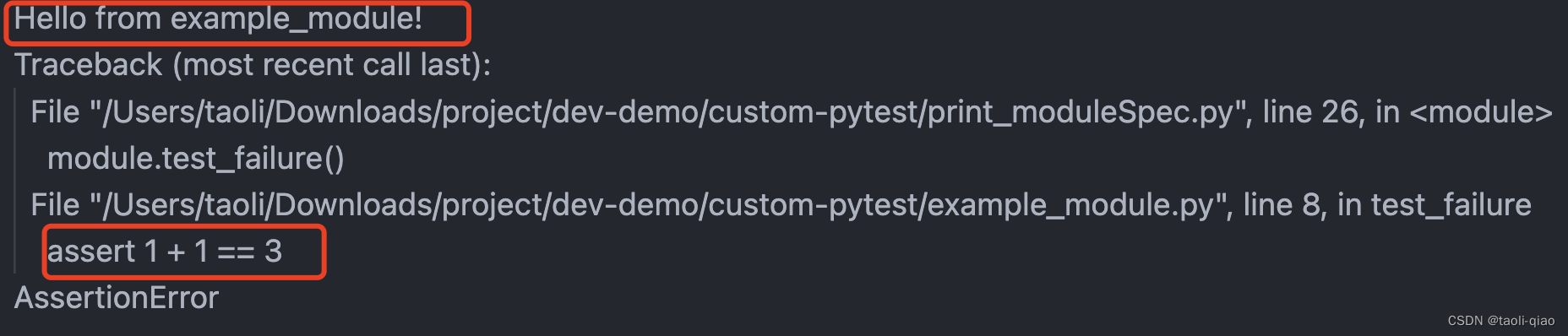 执行命令"python3 simple_pytest.py test_example.py",运行测试,结果如下:两个执行成功,一个失败。说明整个工具功能符合预期。