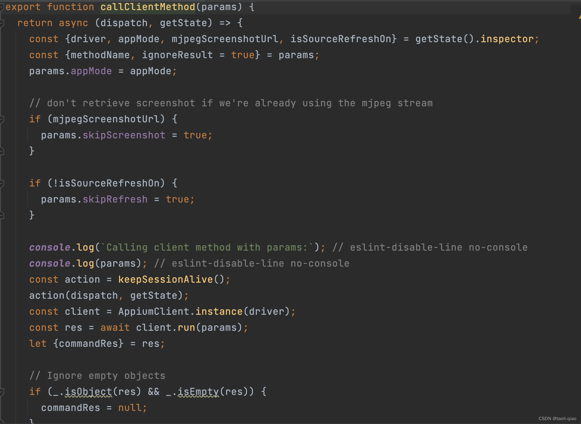 像获取整个页面的pageSource,screenshot等,是call appium server的api来获取的,这些需要与appium server进行交互的部分,都封装在callClientMethod方法里,这个方法也定义在action/Inspector.js文件中。