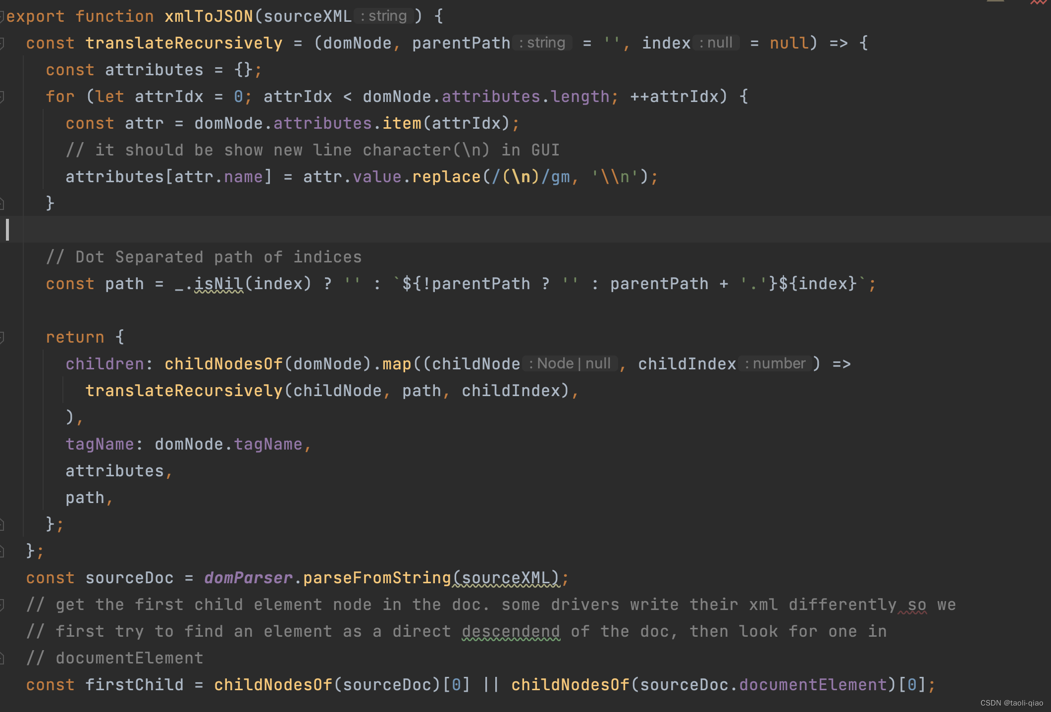 Appium-inspector中,当获取到xml格式的page source后,还调用了util里面的parsing方法将xml格式转换成json格式的page source,source code内容如下图所示: