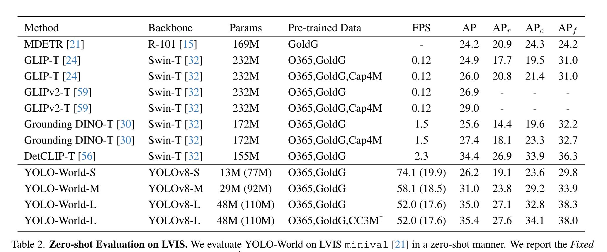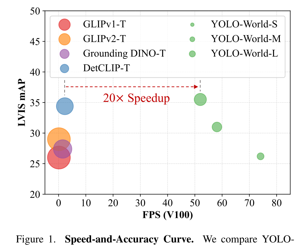 在具有挑战性的LVIS数据集上,YOLO-World在V100上实现了35.4 AP和52.0 FPS,在精度和速度方面都优于许多最先进的方法。此外,微调YOLO-World在目标检测和开放词汇实例分割等几个下游任务上取得了显著的性能