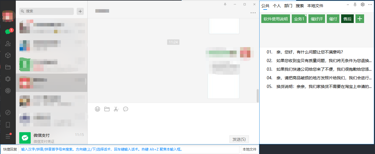 我们可以将以上话术添加到快捷回复助手中,能够让客服少打字且快速回复,可以解决客服工作中相同问题重复回复的苦恼,提升效率和对话质量。
