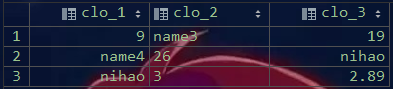 data = [(9, 'name3', 19), ('name4', 26, "nihao"), ('nihao', 3, 2.89)]