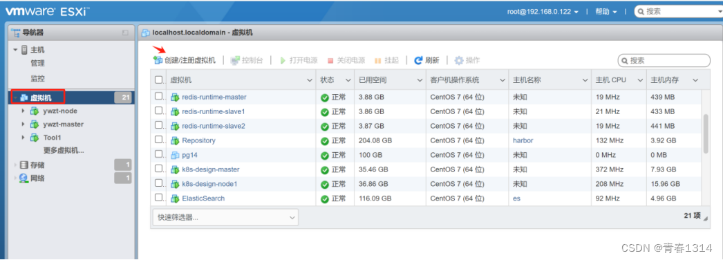 1、选中虚拟机,再点击“创建/注册虚拟机”。