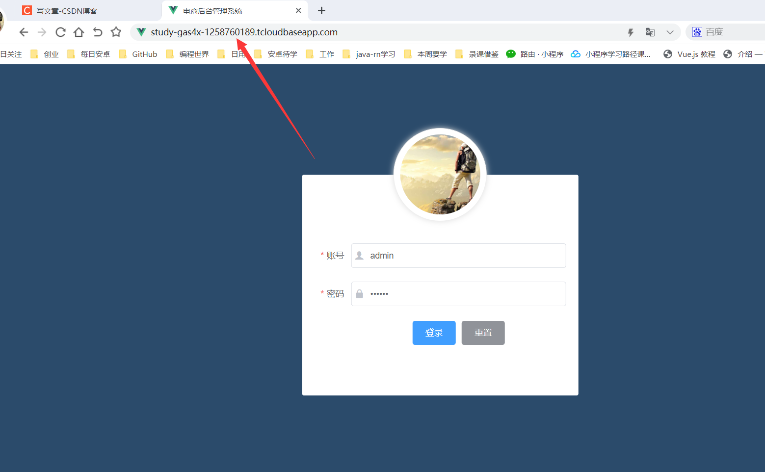 然后我们就可以直接通过云开发为我们配置好的域名,直接访问我们的vue网站了。