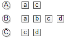 - 'B' : {'a' : 1, 'b' : 1, 'c':1, 'd':1},