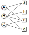 其中users集U={A, B, C},items集I = {a,b,c,d}。则用户物品的二部图如下所示: