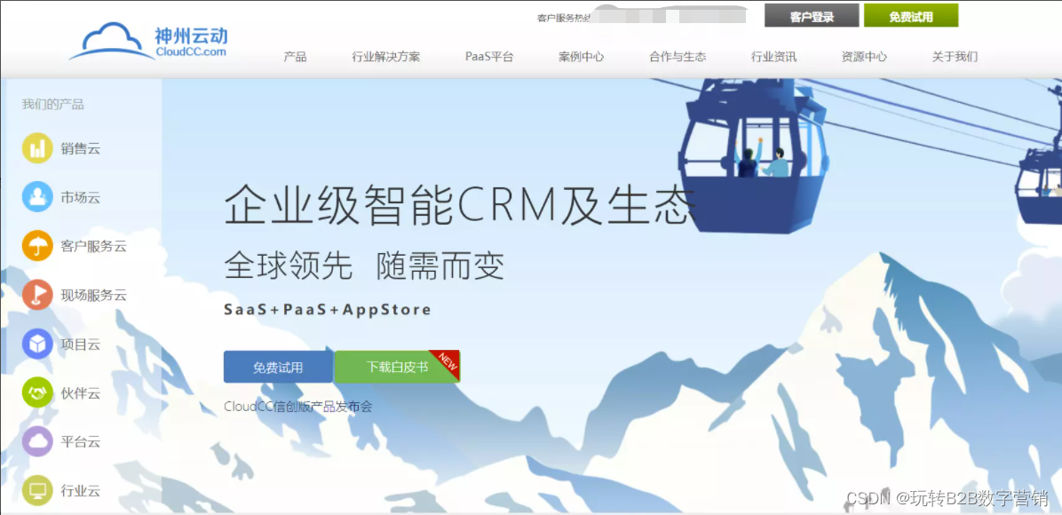 神州云动CloudCC满足大企业复杂业务场景的高效实现,助力上市企业及行业龙头数字化转型。神州云动CloudCC的客户覆盖制造、 消费品、教育、金融、IT高科技、地产、有色金属、医疗健康等行业。早期是Salesforce在国内的实施服务商,后来在2012年推出自己SaaS版CRM,适合大、中、小型企业都适用,据说私有化部署很多。