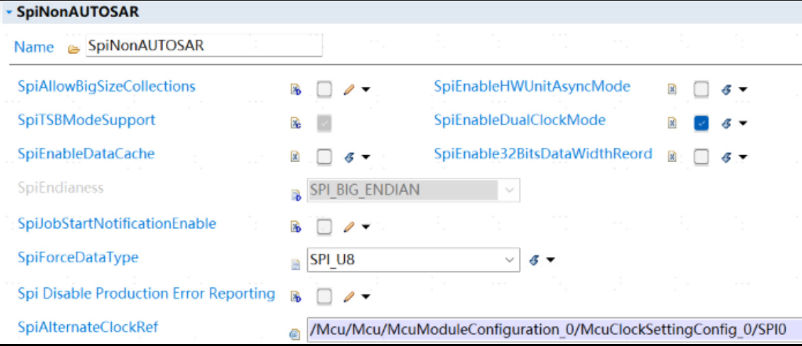 SpiEnable32BitsDataWidthReord由于硬件IP问题,MCAL软件需要重新排序words,详情请看“新配置SpiEnable32BitsDataWidthReord”