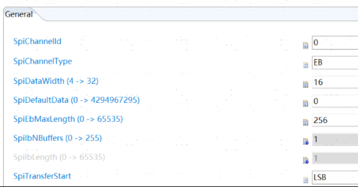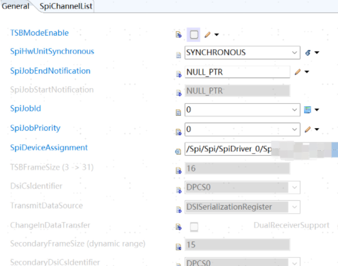 有同学可能会对这里产生疑惑,上面的SpiGeneral里面的SpiLevelDelivered不是可以选增强,也就是同步和异步吗?为什么到通道这里就要么同步要么异步?因为SpiGeneral的同步异步是对于整个芯片的所有SPI模块来说,这里的同步异步仅针对单个的SPI模块,相当于一个是总开关,一个是分开关。