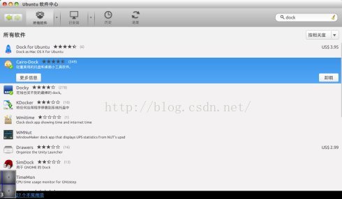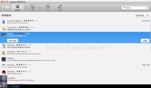 1. 首先我们打开ubuntu软件中心,如图输入dock,下载当前的这个软件