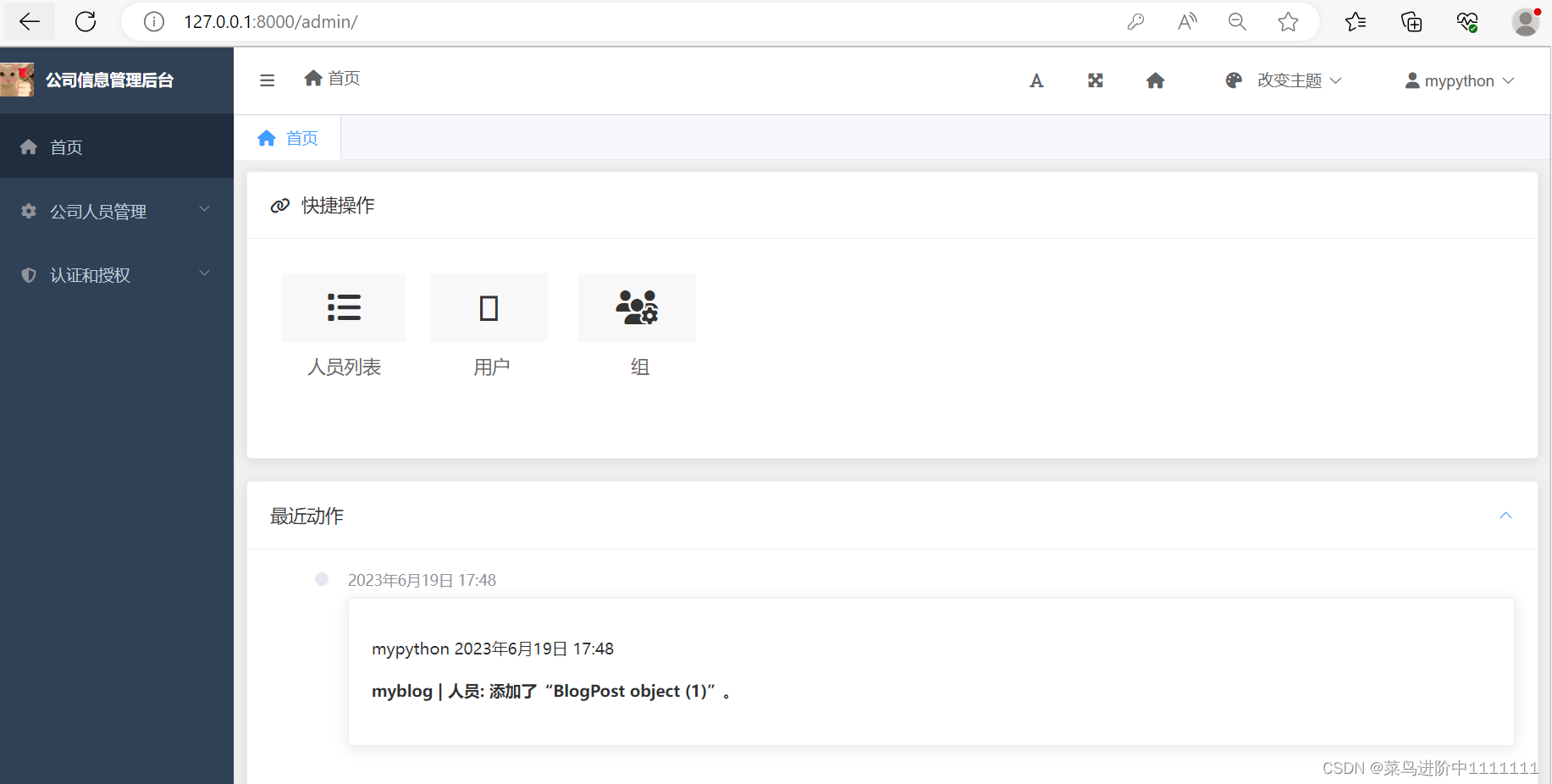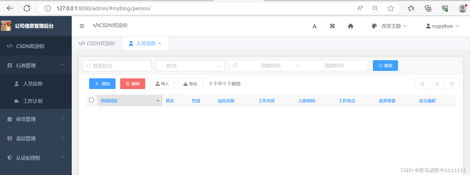 verbose_name = '公司人员管理' # 修改页面显示为中文