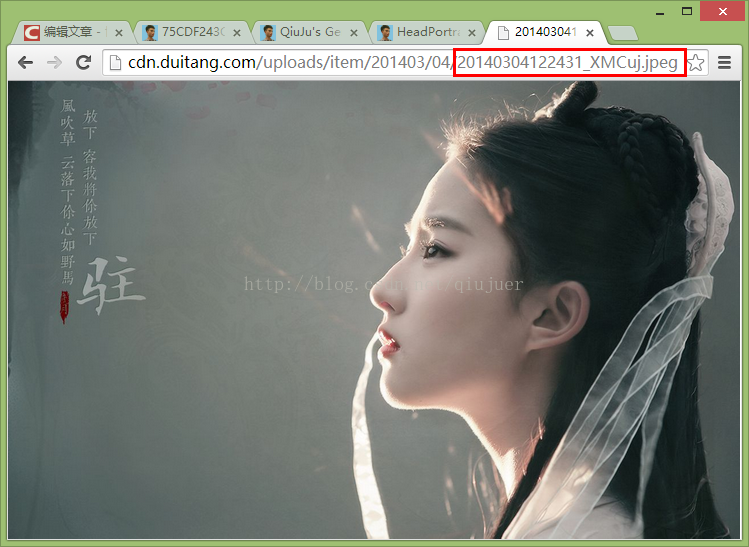 换言之其在”cdn.duitang.com“网站的服务器中存储的地址应该是文件夹"uploads/item/201403/04”下的“20140304122431_XMCuj.jpeg”文件。
