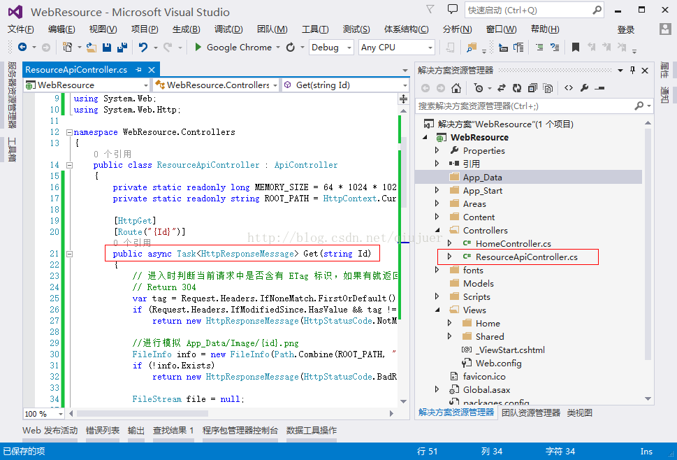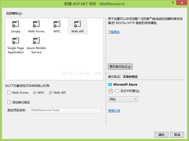 首先打开VS-新建项目-web应用程序-名称“WebResource”-WebApi