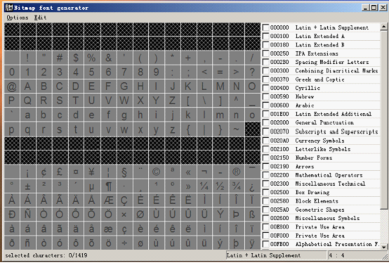 5 在BMFont上找到Edit菜单,然后选择Selects chars from file,载入刚才新建的txt文件,你会发现刚才输入的字符在BMFont中已经被选中。