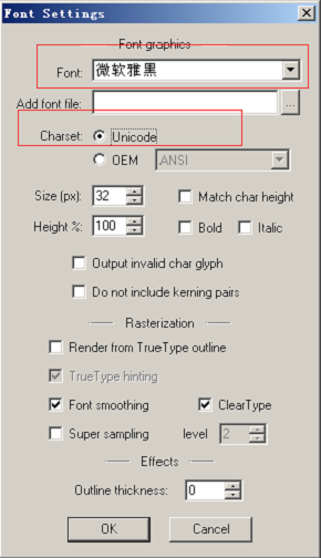11 在使用BMFont生成中文时需要注意,在Font Setting中设置Font时,Font要设置成中文的(比如微软雅黑),Charset默认Unicode就行,同样按照以前相同的方式设置Export options。然后再将写有中文的文本文件载入,最后保存。