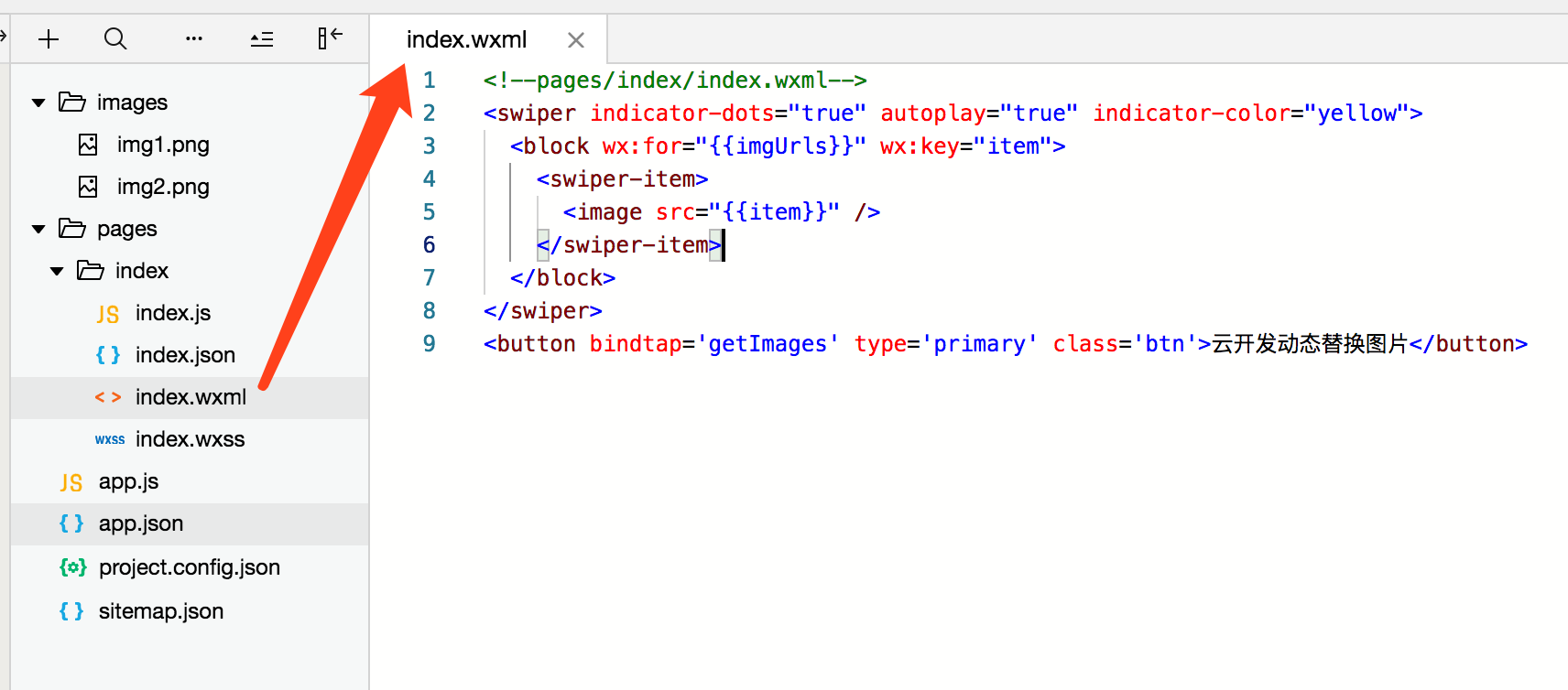最近在教大家入门小程序开发时,有同学不知道怎么样动态的更新小程序swiper(轮播图)组件里的图片资源。今天就来给大家讲一讲如何动态替换轮播图。