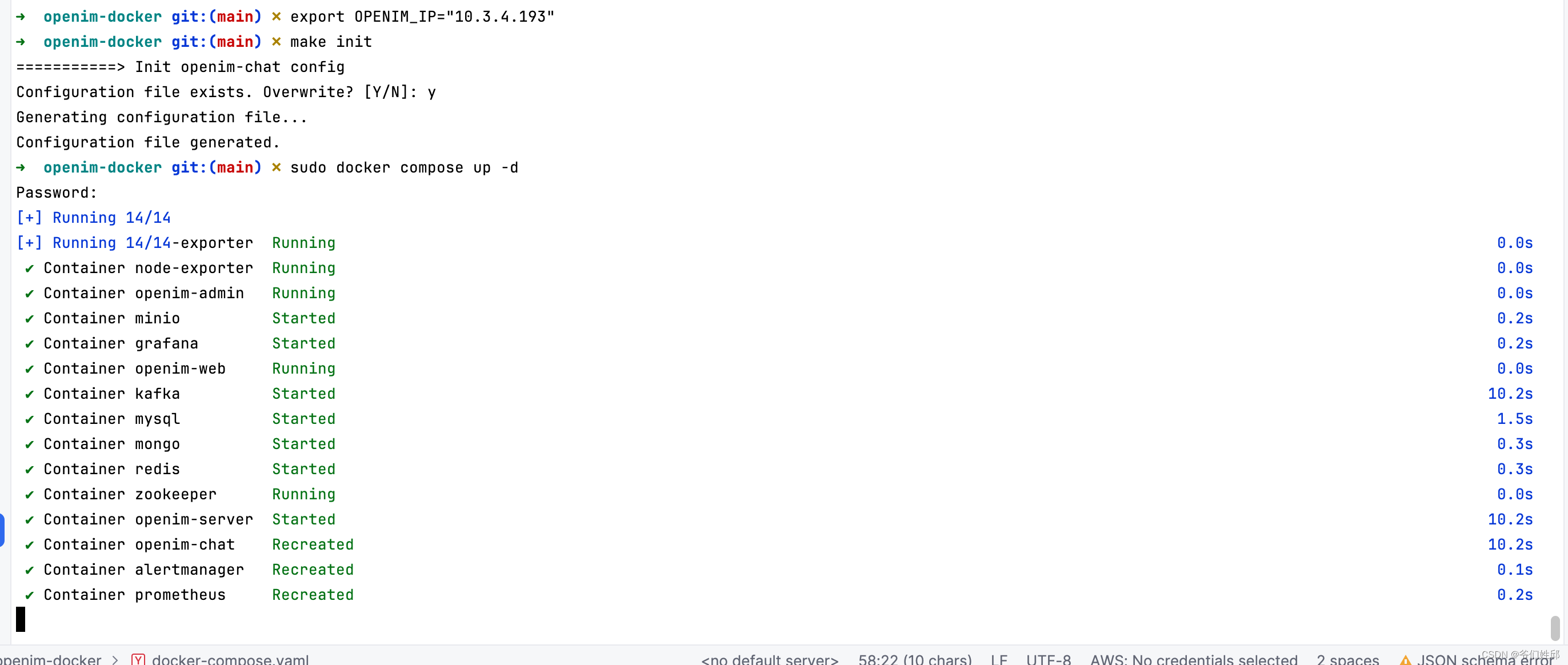 5. rm openim-server/config/config.yaml openim-chat/config/config.yaml 这两个配置文件要在每次失败后的重启前删掉