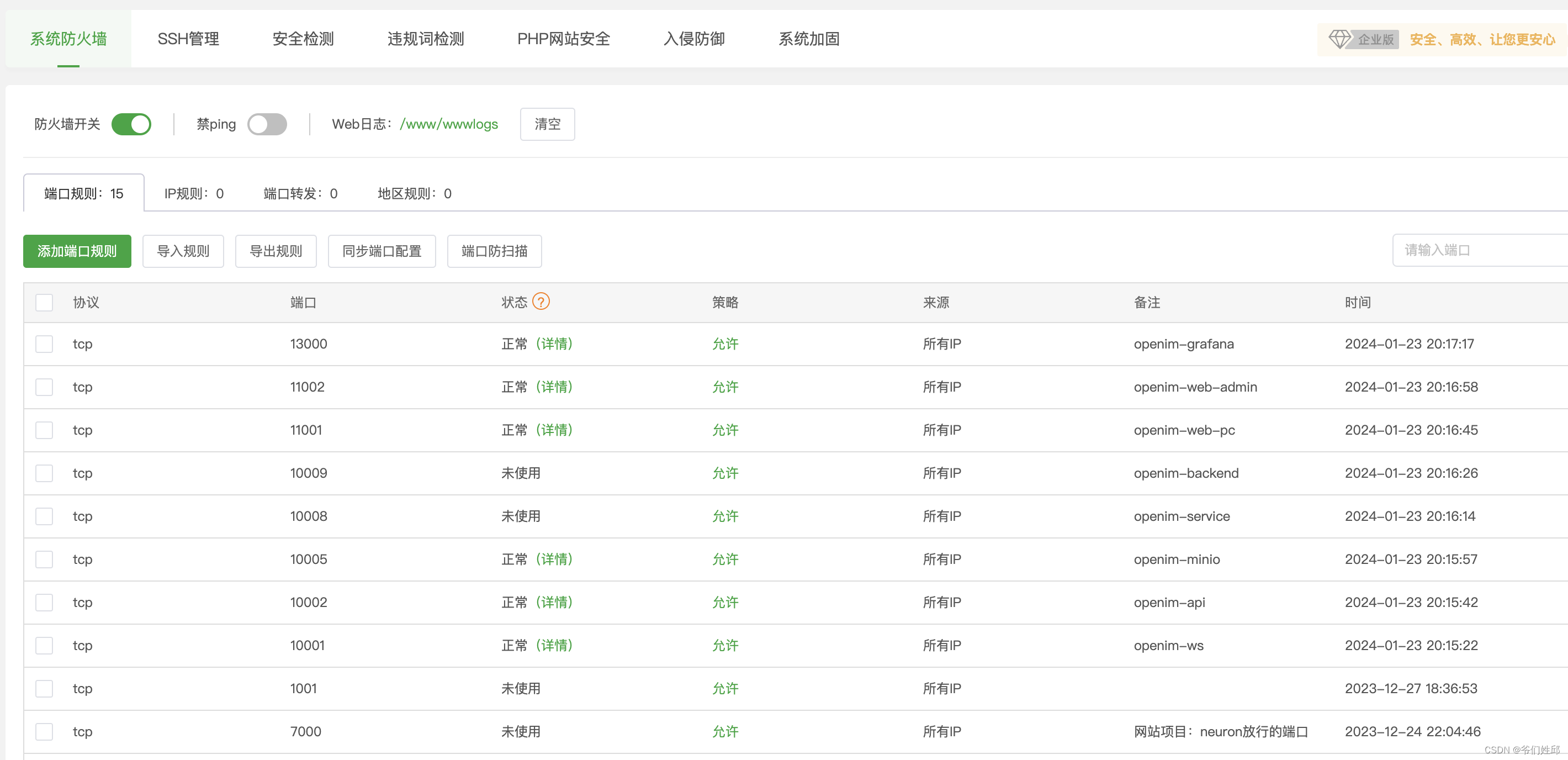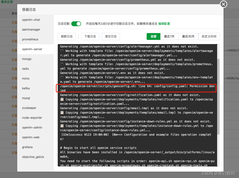 在ubuntu下有宝塔组件,可以很方便地进行查看,发现openim-server启动后依然出现了Permission denied: