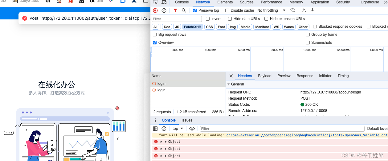 此时发现后台服务调用失败,同时i18n也没有,可能也是后台失败的原因,此时的docker ps显示 Up 11 seconds (health: starting) ,经重启重试后依然不成功: