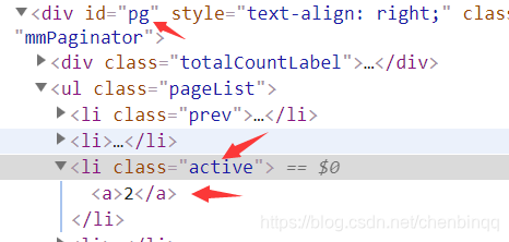 使用Chrome浏览器,点击键盘上的F12,打开开发者调试模式,查看目前处于选中状态的页码2对应的html