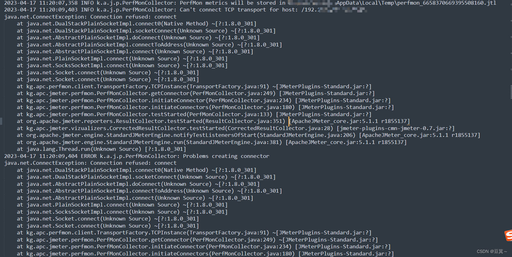 k.a.j.p.PerfMonCollector: Can't connect TCP transport for host: /xxx:xxx:xx:xx:4444