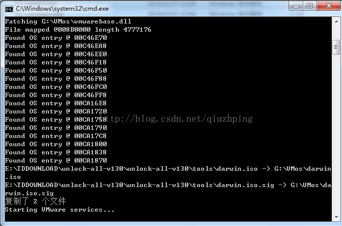 如果出现找不到WM相关执行文件说明Unlock-all的版本不对,下载新一点的版本安装上述操作就可以。目前最新VM虚拟机VMware Workstation 11的Mac补丁是没有找到的。