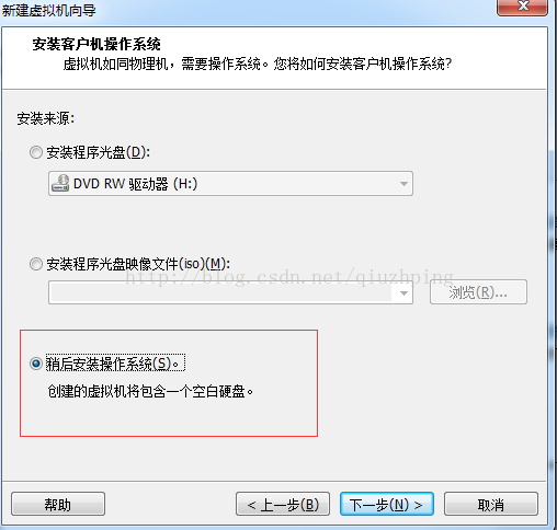 进入安装客户机操作系统界面,我这里选择的是稍后安装操作系统,因为我想先定制一下虚拟机硬件配置参数。