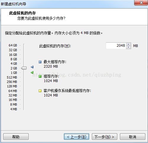 进入此虚拟机的内存配置界面,我配置为2G,因为的电脑的物理内存有4G。