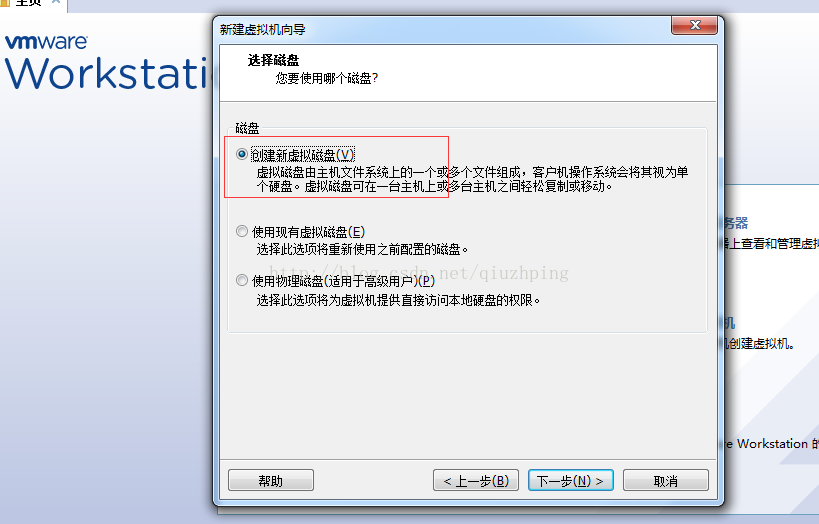 进入选择磁盘界面,选择创建新虚拟磁盘