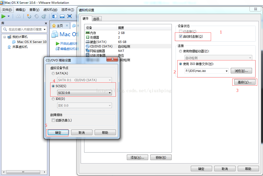 设置CD/DVD(SATA)配置,分了5个步骤,我这里都一一用红色标注了。