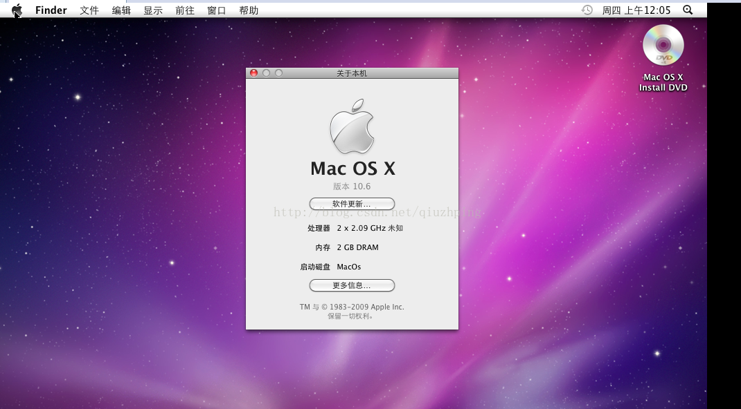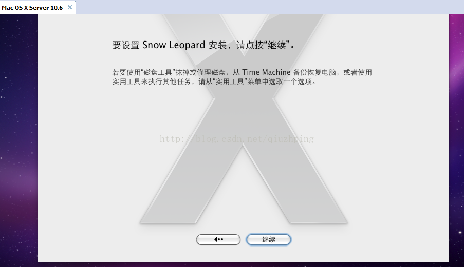 看到如下界面说明安装Mac OS XServer 10.6已经成功了。