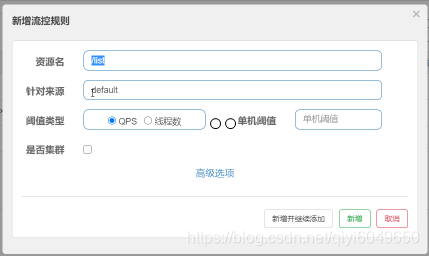 阈值类型:是按每秒访问数量(QPS)还是并发数(线程数)进行流控
