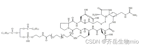 磷脂-聚乙二醇-iRGD中的iRGD是八元环肽,可用于胶束、囊泡的被动靶向,主动靶向研究和用于药物输送。DSPE(1,2-二硬脂酰-sn-甘油-3-磷酸乙醇胺)是一种饱和的18碳磷脂,常用于脂质体的合成。聚乙二醇(PEG)偶联DSPE具有亲水性,可用于药物传递、基因转染和生物分子修饰。磷脂的聚乙二醇化显著改善了胶囊药物的血液循环时间和稳定性。聚乙二醇能增强溶解性和稳定性,降低带电分子表面非特异性结合,降低多肽的免疫原性。