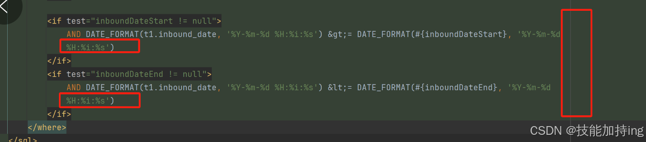问题记录:IDEA 格式化 导致mapper中日期查询语句换行失效