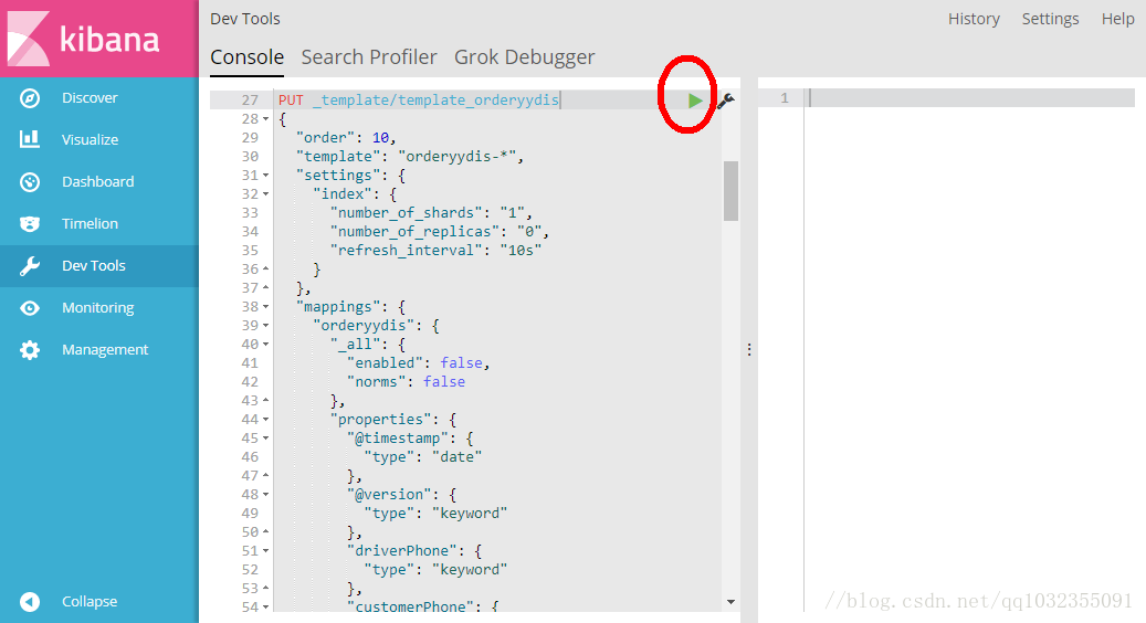 进入测试环境kibana界面http://131.23.41.128/app/kibana#/dev_tools/console?_g=()