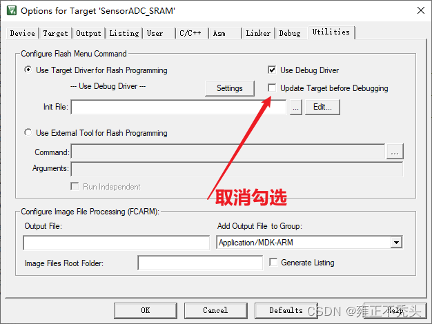 2、KEIL配置实现代码下载进SRAM