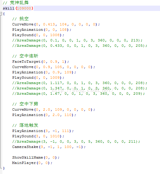 CurveMove(0, 0.413, 104, 0, 0, 0, 0);的意思就是,第0.413秒,开始做曲线运动,让角色飞到空中,曲线运动的ID是104,