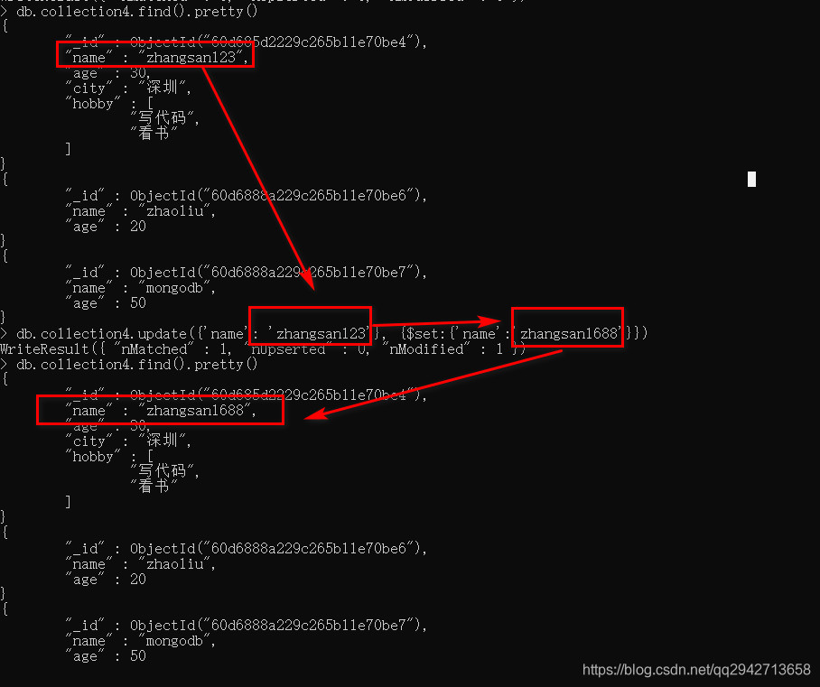 - multi : 可选,mongodb 默认是false,只更新找到的第一条记录,如果这个参数为true,就把按条件查出来多条记录全部更新。